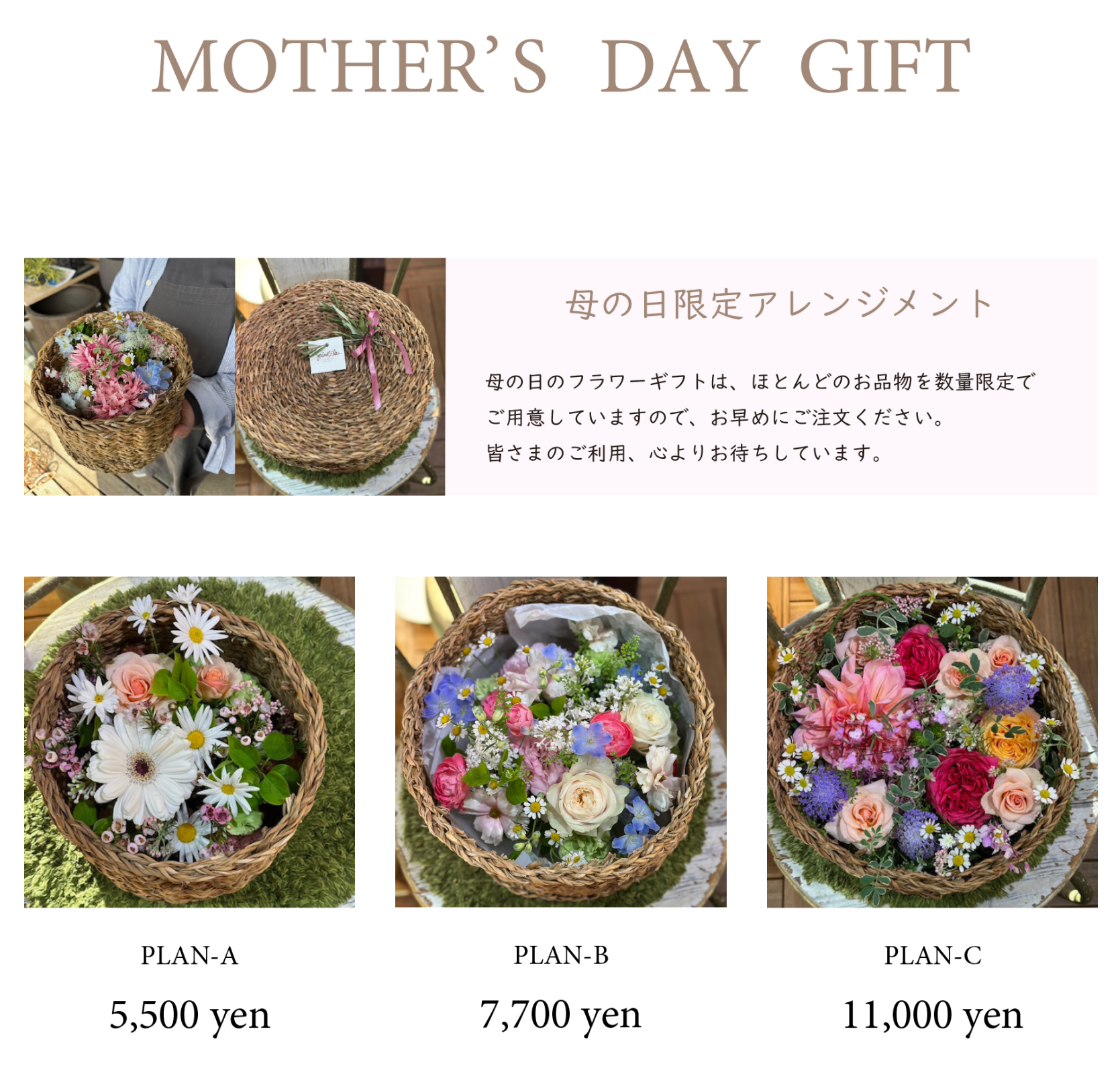 【2025年の母の日限定アレンジメントは完売いたしました。】